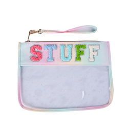 Limpar Flat Waterproof Zipper Nylon Cosmetic Bag Etiqueta Alfabeto Grande Capacidade Travel Storage Pouches para Mulheres Portátil