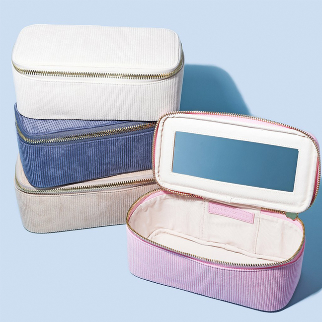 Ayna kılıfı ile stok kadife makyaj çantası kozmetik çantası seyahat taşınabilir saklama çantası organizatör özel tasarım Logo fermuar
