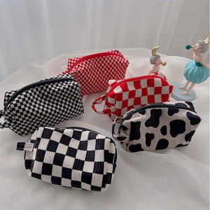 Satranç tahtası kafes kozmetik çantası Retro tarzı basit büyük kapasiteli kaşmir saklama çantası öğrenci kalem kutusu