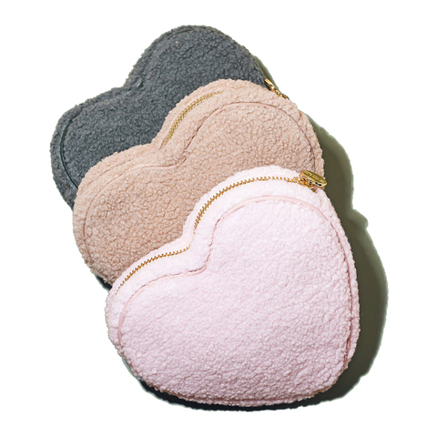 Sherpa rahat kalp kılıfı kızlar makyaj çantası logolu sevimli kozmetik Case kılıfı tuvalet fermuarlı çantalar
